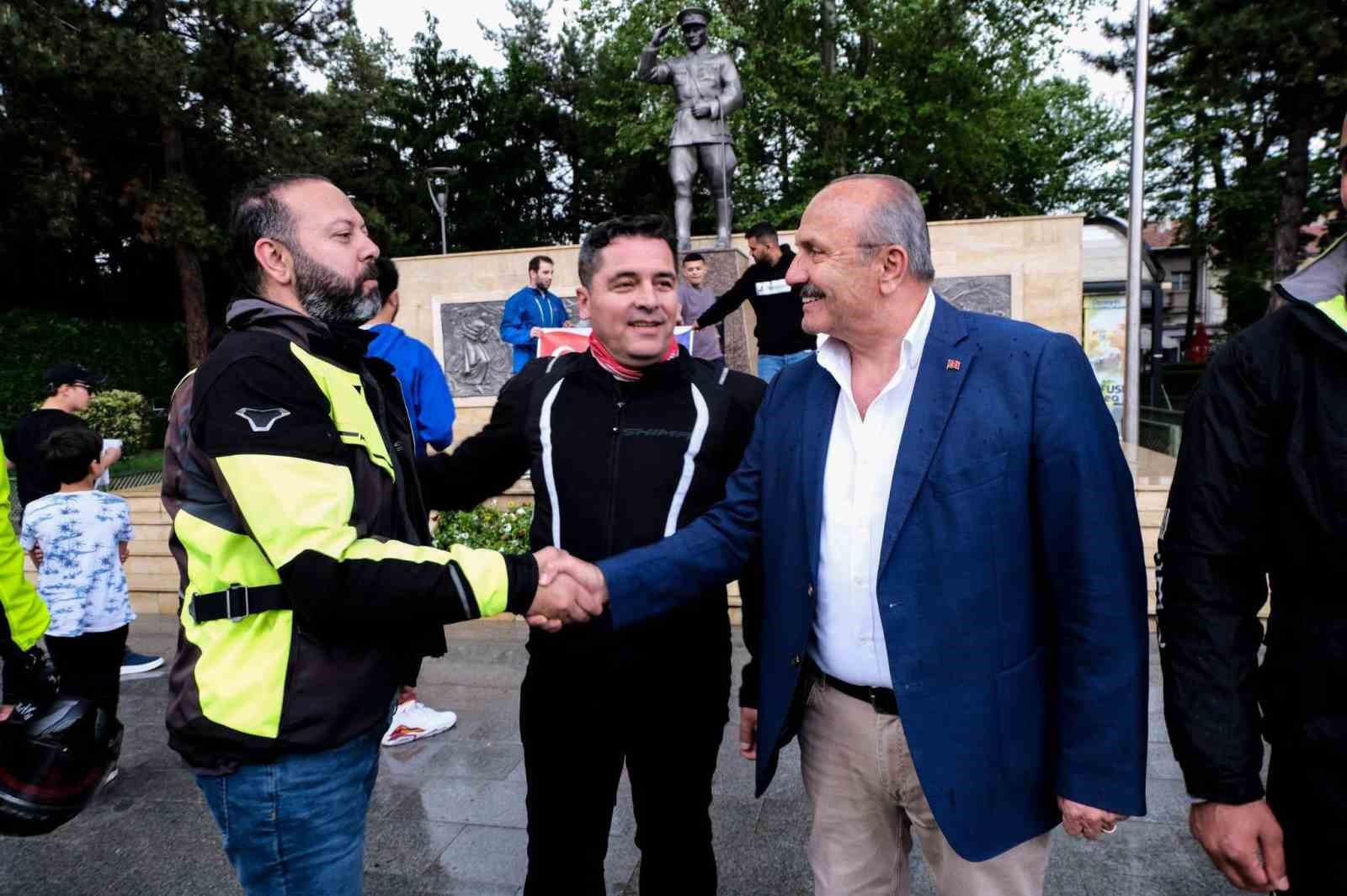 Türk bayrağını 19 Mayıs Atatürk’ü Anma Gençlik ve Spor Bayramı’nda Samsun’a ulaştırmak için yola çıkan motosiklet tutkunlarını Kastamonu ilçesinde Belediye Başkanı Hüseyin Arslan karşıladı.
