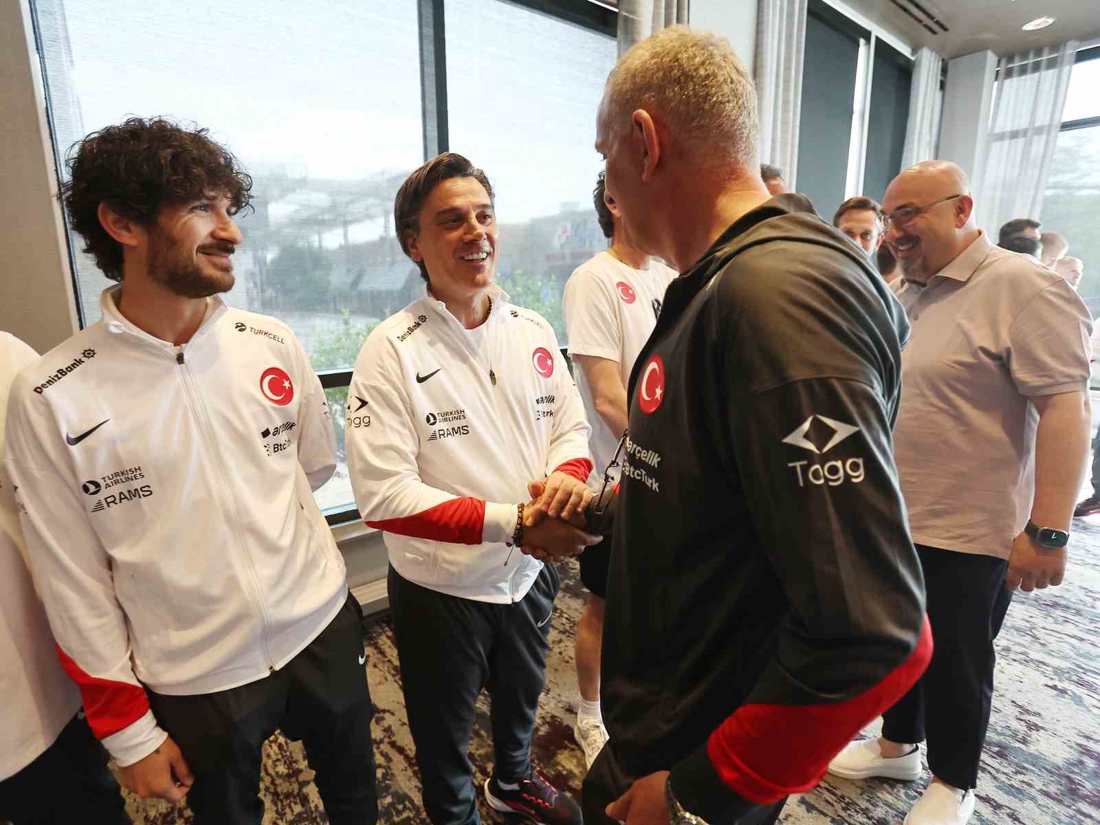 A Milli Takımı’ın 3 Haziran’dan itibaren kampta bulunduğu Foxborough’daki otelde yapılan merasime, Türkiye Futbol Federasyonu Başkanı İbrahim Ethem Hacıosmanoğlu, Yönetim Kurulu Üyesi Mustafa Temel Bozbağ, Genel Sekreter Abdullah Ayaz, A Milli Takım Teknik...
