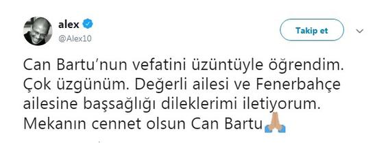 Alex de Souza'nın yaptığı paylaşımda "Can Bartu'nun vefatını üzüntüyle öğrendim. Çok üzgünüm. Değerli ailesi ve Fenerbahçe ailesine başsağlığı dileklerimi iletiyorum. Mekanın cennet olsun Can Bartu" ifadeleri yer aldı.