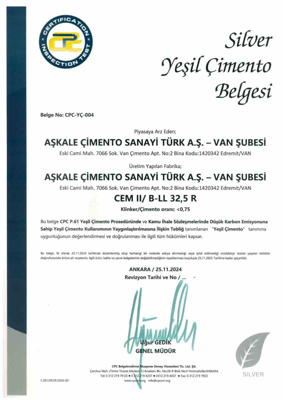 Aşkale Çimento; "Yeşil çimento sertifikasını almaya hak kazanan Türkiye’deki ilk çimento grubuyuz"