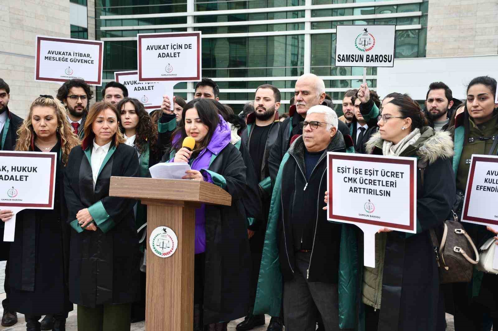 Samsun Adliyesi önünde bir araya gelen avukatlar, tarifenin gecikmeli yayınlanması ile yapılan yüzde 40’lık artışı eleştirdi. Burada avukatlar adına basın açıklamasında bulunan Samsun Barosu Yönetim Kurulu Üyesi ve CMK Komisyon Başkanı Av. Tuğçe Karadeniz, yapılan artışın tüm avukatları hayal kırıklığına uğrattığını belirtti. Av. Karadeniz, "Vatandaşların hakları için mücadele eden ve güveni bir nebze olsun diri tutmaya çalışan avukatlara böylesi düşük tutarların teklifi dahi kabul edilebilir değildir. Bizler yıllarca bekleyen dosyalarla uğraşırken, sanık tarafını adil bir karar verileceği, mağdur tarafı haksızlığın cezasız kalmayacağı, yakınları ise adalete güvenmeleri konusunda telkin ediyoruz. Görev başında saldırılara maruz kalıyor ancak yine de adaletin tecelli etmesi için var gücümüzle mücadele ediyoruz. Bizler mesleğimizin gereklerini yerine getirirken elimizden gelenin daha fazlasını yapmaya çalışıyor, bu uğurda fedakârlık yapmaktan da geri durmuyoruz. Ancak gelinen noktada ne yazık ki, bu emeklerin bir karşılığının olmadığını görmekten de büyük üzüntü duyuyoruz. Zorlu çalışma şartlarına rağmen görevimizi ifa etmeye çalışan bizlerin emeği görmezden gelinmektedir. 2025 Şubat ayı kira artış oranı bile yüzde 56,35 iken tarifeye yapılan zam yüzde 40 olmuştur" diye konuştu.