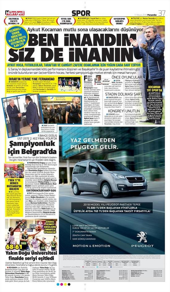 Kongre süreci nedeniyle şu an çok yakın olmalarına rağmen şampiyonluğun hiç konuşulmamasından rahatsız olan Kocaman, maç öncesi hiç kimsenin başkanlık seçimini konuşmamasını istiyor. Aykut hoca, son maçta herkesin şampiyonluğa inanmasını bekliyor.