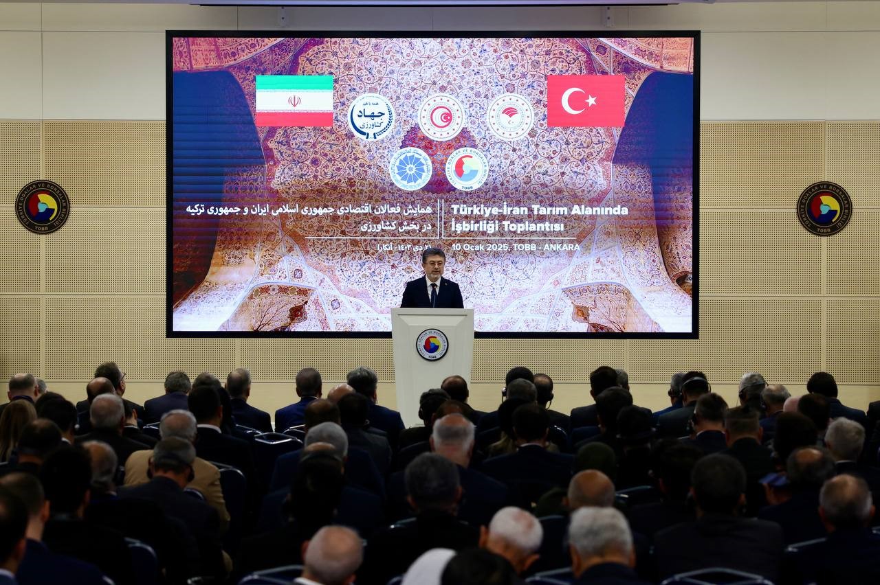 TOBB tarafından düzenlenen Türkiye-İran Tarım Alanında İşbirliği Toplantısı’na Tarım ve Orman Bakanı İbrahim Yumaklı, İran Tarım Bakanı Gholamreza Nouri Ghezeljeh, Ticaret Bakan Yardımcısı Özgür Volkan Ağar, TOBB Yönetim Kurulu Sayman Üyesi Faik Yavuz, İran Ankara Büyükelçisi Mohammad Hassan Habibollah Zadeh ve İran Ticaret Sanayiler Madenler ve Tarım Odası Başkanı Samad Hasanzadeh katıldı. TOBB İkiz Kuleler Sosyal Tesisler’de gerçekleşen programda konuşan Tarım Orman Bakanı Yumaklı, Türkiye’nin İran ile ikili ticaret hacminin 30 milyar dolarlık hedefe ulaşması için işbirliği alanlarını çeşitlendirmeye büyük önem verdiklerini kaydetti.