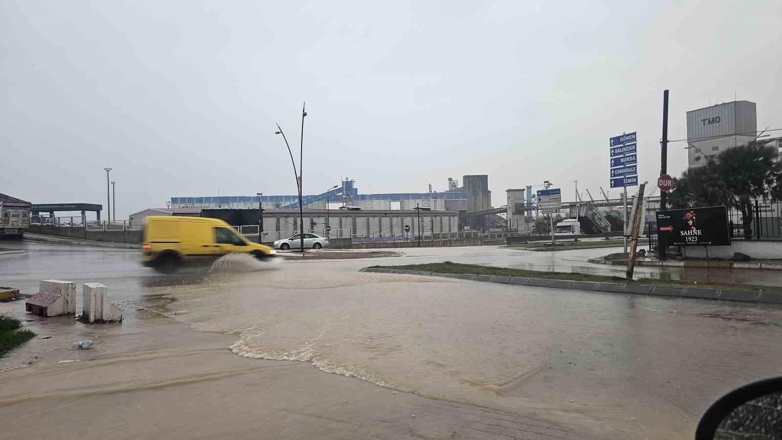 Bandırma’da sağanak yağış yolları göle çevirdi, rögarlar patladı