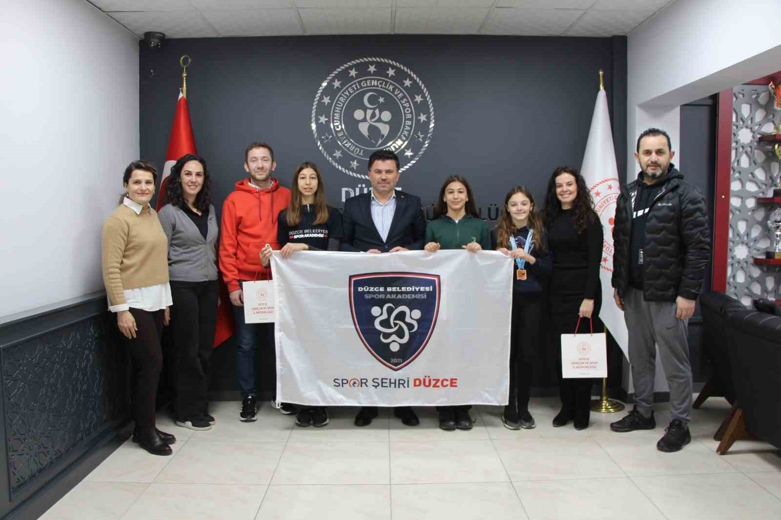 DÜZCE(İHA) – Düzce Gençlik ve Spor İl Müdürü İsa Yazıcı Düzceli başarılı yüzücüleri makamında ağırladı.