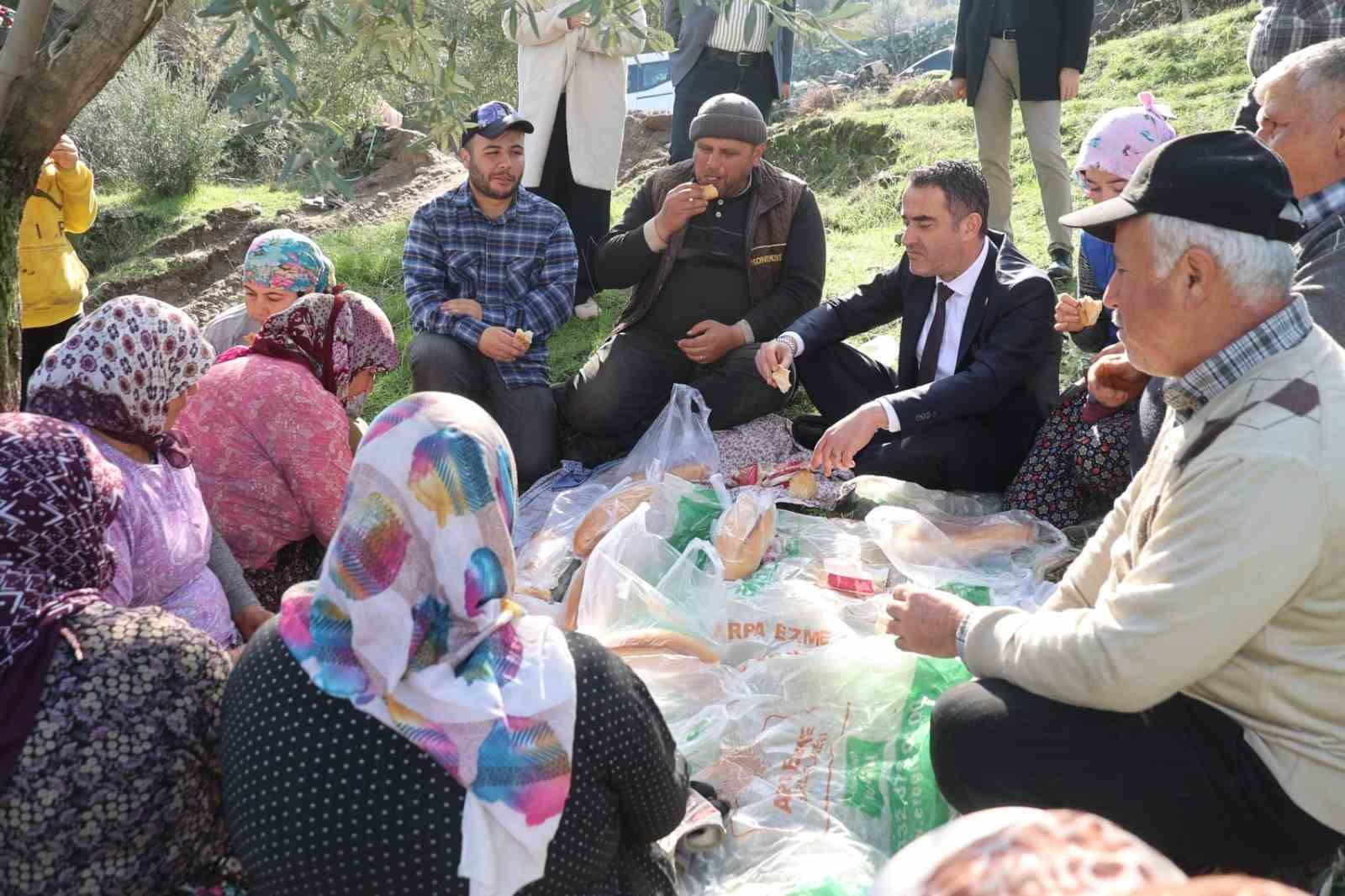 Ziyareti sırasında zeytin işçilerinin yemek molasına denk gelen Başkan Arıcı, işçilerin sofrasına misafir oldu. İşçilerle birlikte helva ve ekmek yiyen Başkan Arıcı, onların taleplerini ve yaşadıkları sorunları dinledi.