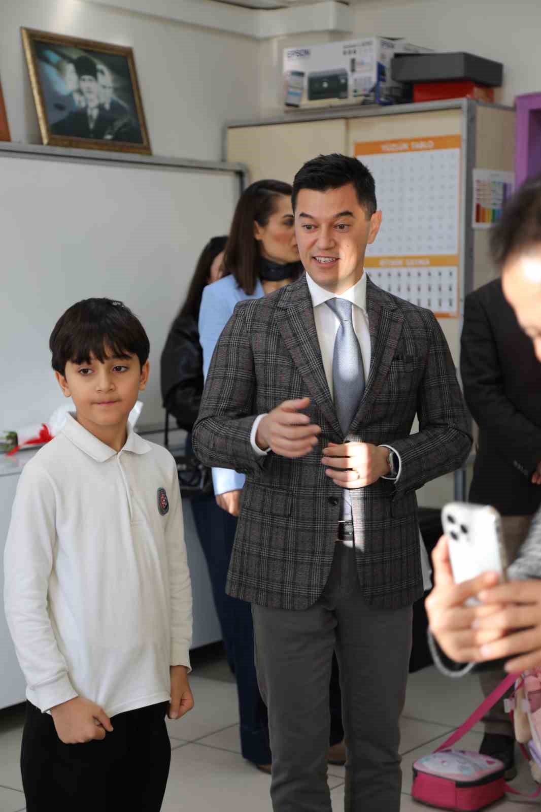 Okulda büyük bir coşkuyla karşılanan Başkan Ünlü ilk olarak Yunus Emre’nin sınıfını ziyaret etti. Sınıf başkanı seçilen Yunus Emre’yi tebrik eden Ünlü, öğrencilerle sohbet ederek onlara başarı dileklerini iletti. Teneffüs olduğu için çocuklara süt simit ikramında da bulunan Ünlü, “Hepinizin gelecekte çok iyi yerlere geleceğine inanıyorum. Gelecek güzel günler için çok çalışmaktan, mücadele etmekten ve hayallerinizin peşinden koşmaktan asla vazgeçmeyin. Sizler için her zaman desteğe hazırız” dedi.