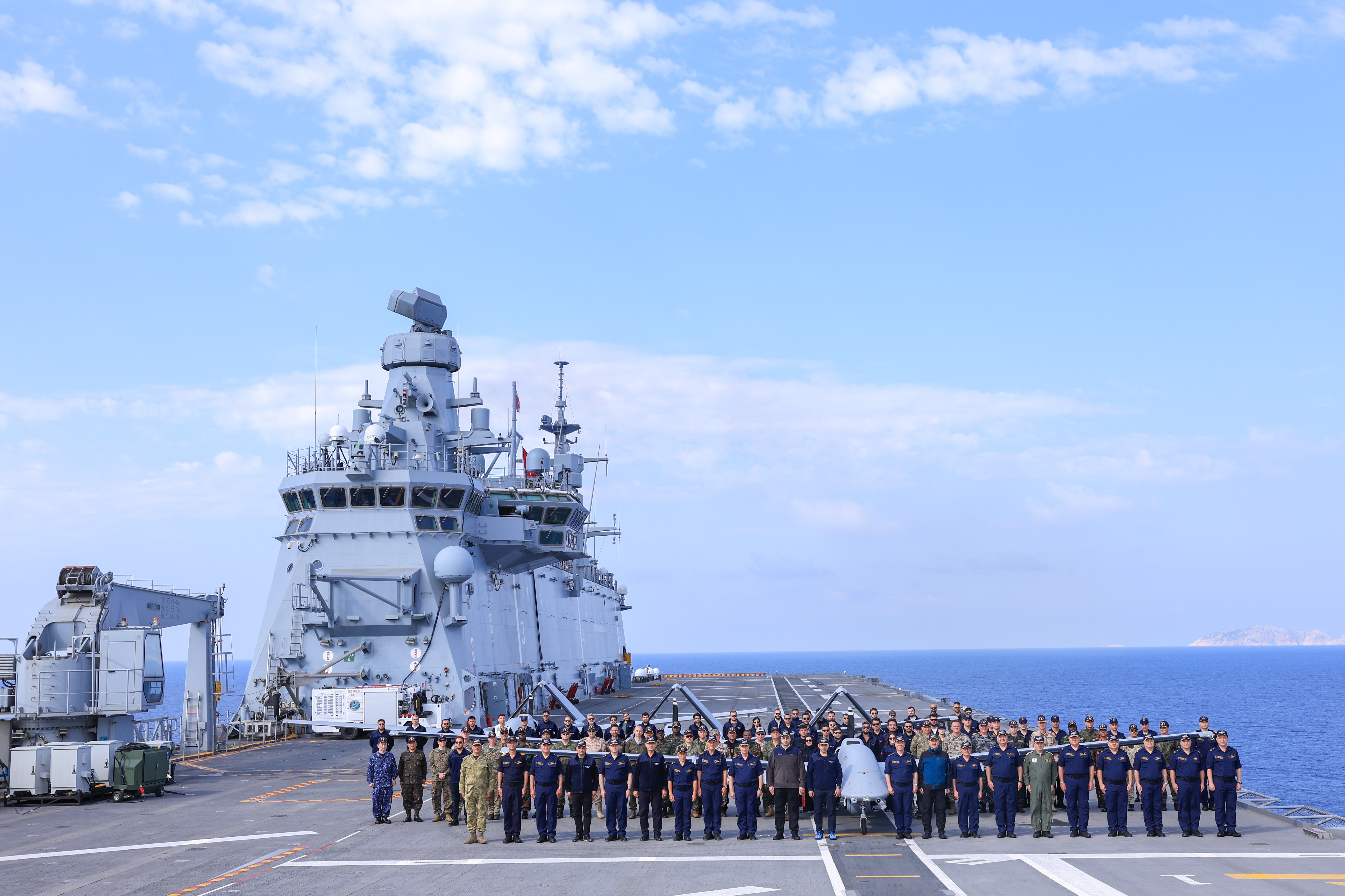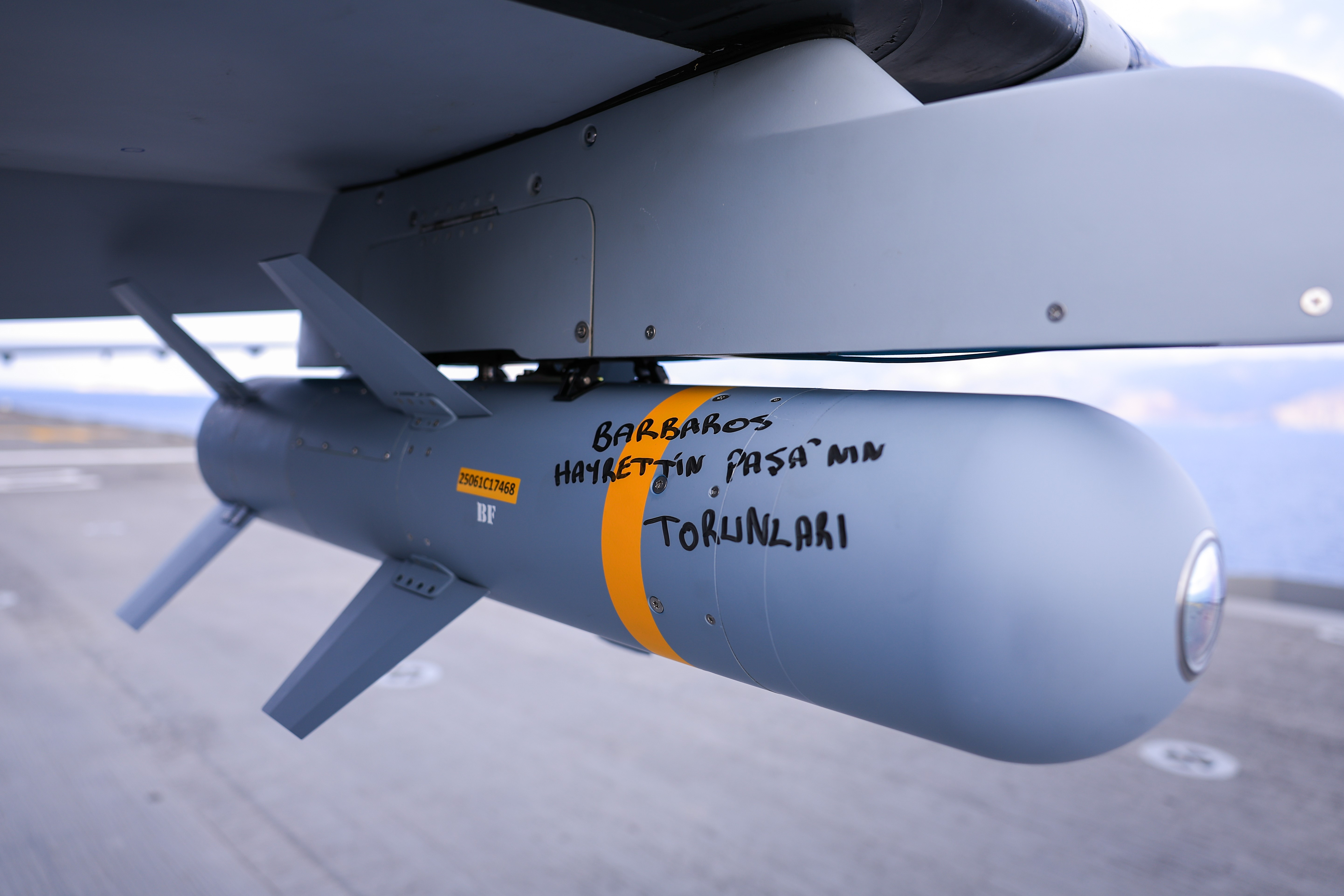 DENİZKURDU-2025 Tatbikatı kapsamında TCG Anadolu’da konuşlu bulunan Bayraktar TB3 SİHA’lar, Seçkin Gözlemci Günü faaliyetlerinde kendilerine verilen görevleri başarıyla yerine getirdi. PT-3 ve PT-4 kuyruk numaralı milli SİHA’lar, ikişer adet MAM-L mühimmatı yüklü şekilde TCG Anadolu’nun kısa pistinden peş peşe havalandı. Baykar tarafından geliştirilen yapay zeka destekli görev algoritmaları ile tam otonom şekilde gerçekleştirilen uçuşta Bayraktar TB3 SİHA’lar, senaryo dahilindeki kara hedeflerine iki salvo halinde toplam dört MAM-L mühimmatını tam isabetle gönderdi.