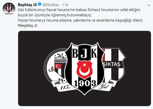Siyah-beyazlı kulüpten yapılan açıklamada, "Eski futbolcumuz Pascal Nouma'nın babası Richard Nouma'nın vefat ettiğini büyük bir üzüntüyle öğrenmiş bulunmaktayız. Pascal Nouma'ya, Nouma ailesine, yakınlarına ve sevenlerine başsağlığı dileriz." ifadeleri kullanıldı.