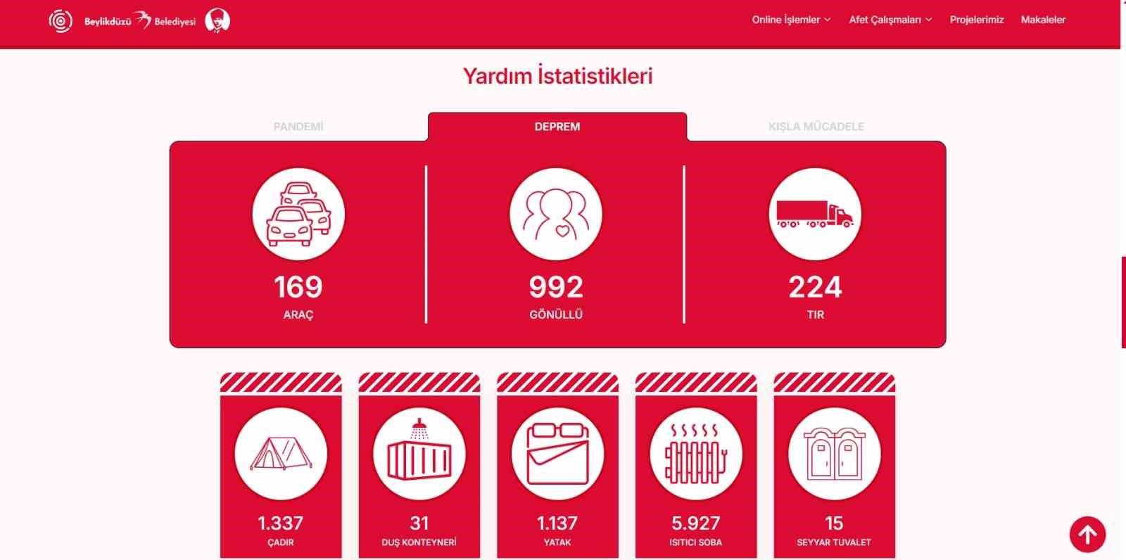Afet sonrası yaşanacak paniği önlemek ve sağlıklı bilgi alışverişini sağlamak amacıyla ilçede belirlenen “Afet Toplanma Alanları” da platformda detaylı olarak sunuluyor. Vatandaşlar, bulundukları yere en yakın toplanma alanlarını harita üzerinden görebiliyor ve acil durumlarda hızlı bir şekilde ulaşım sağlayabiliyor. Ayrıca, siteye entegre edilen canlı istatistikler, son depremler ve belediyenin afet hazırlık çalışmaları hakkında güncel veriler sunarak kullanıcıların bilgilendirilmesini sağlıyor.