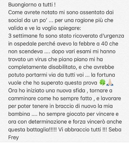 "Herkese günaydın. Fark ettiğiniz gibi, bir süredir sosyal medyada yoktum ve bunu sizlerle paylaşmak istiyorum. Üç hafta önce hastaneye gittim. Ateşim 40'ın altına düşmüyordu. Birkaç test yapıldıktan sonra, beni yavaş yavaş devre dışı bırakacak bir virüs buldular"
