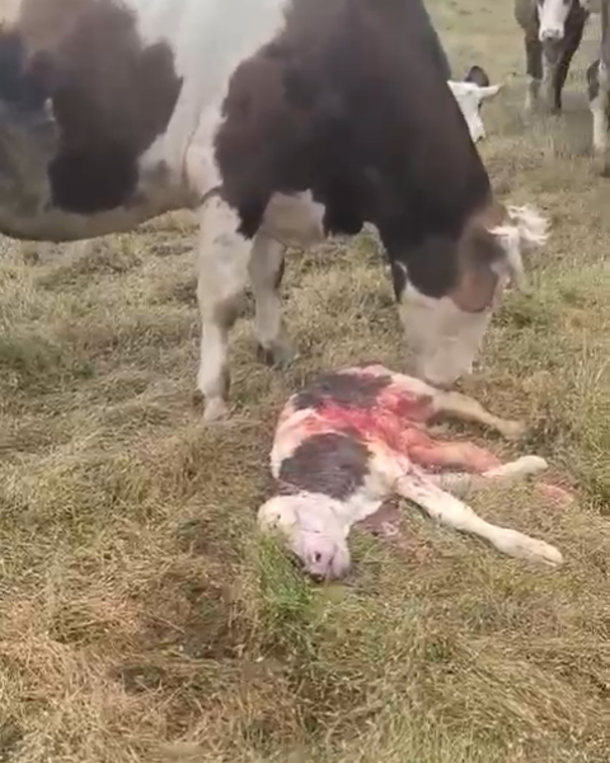 Büyükbaş hayvanın doğumunu jandarma yaptırdı