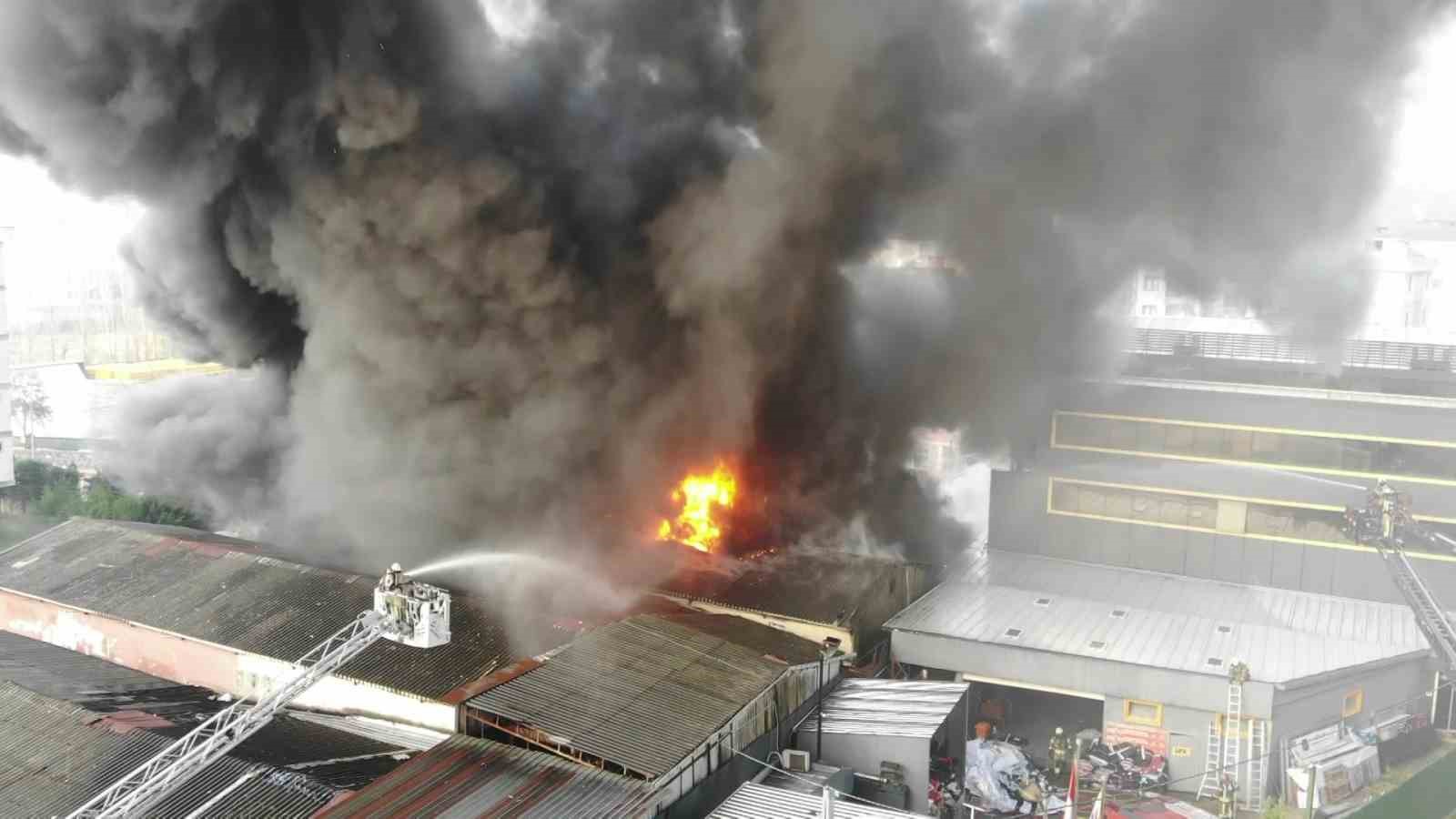 Çekmeköy’de lastik deposunda çıkan yangın havadan görüntülendi
