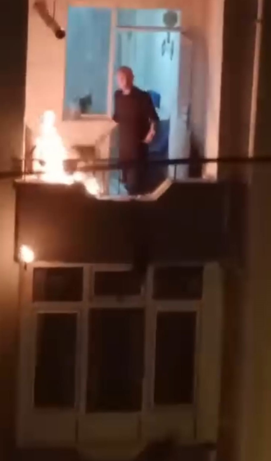 Cinnet geçiren şahıs evinin balkonunu ateşe verdi