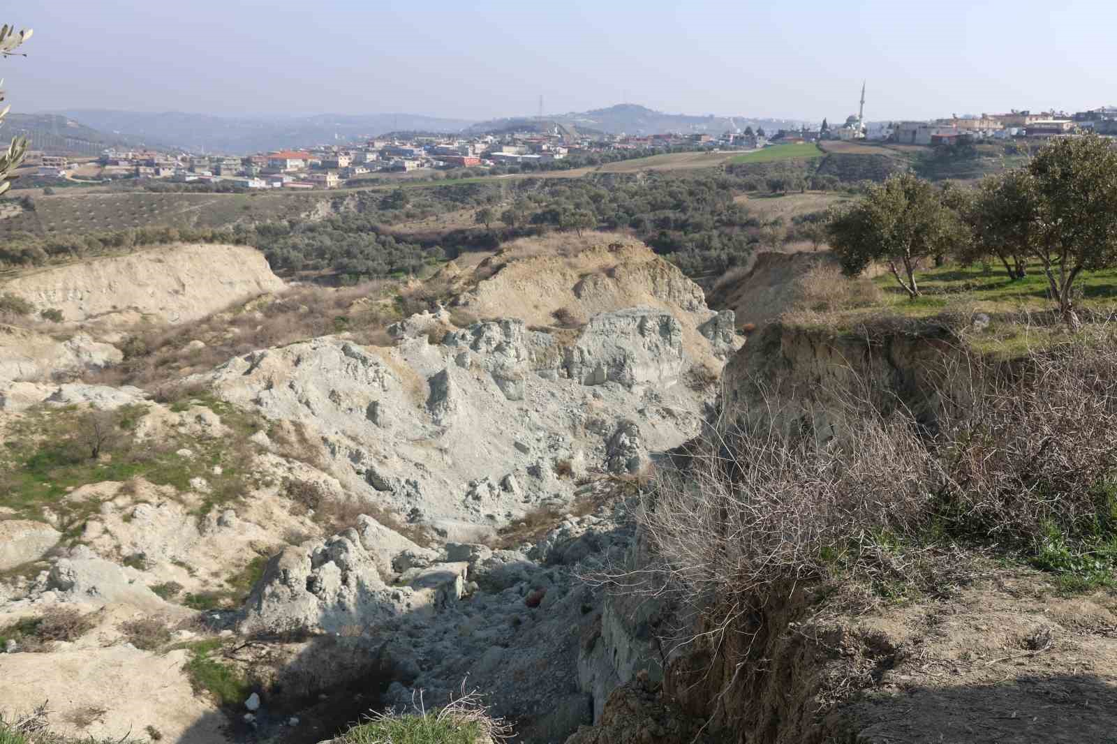 Kahramanmaraş merkezli depremlerde Hatay’ın Altınözü ilçesi Tepehan Mahallesi’ndeki 33 dönümlük zeytin bahçesi ortadan ikiye ayrılmıştı. Devasa yarığın oluştuğu bahçede 2 uçtaki ağaçların arasında neredeyse 300 metrelik mesafe meydana gelmiş ve 200 ağaç da yarık içerisinde kalarak heba olmuştu. Mahallede yaşayan vatandaşlar, asrın felaketinin üzerinden 2 yıl geçmesine rağmen görünümüyle ürküten devasa yarığı gördüklerinde aynı korku ve endişe hissettiklerini belirtti.