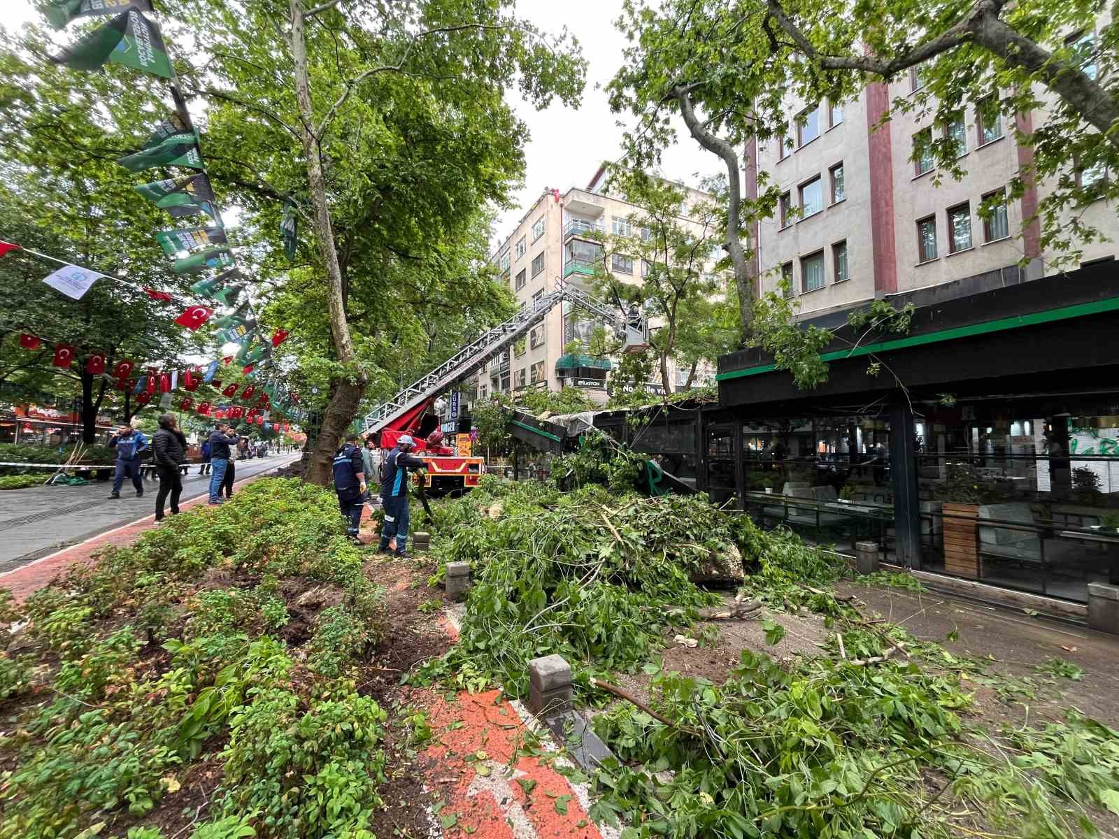 Dev ağaç kafenin üzerine devrildi, facia teğet geçti