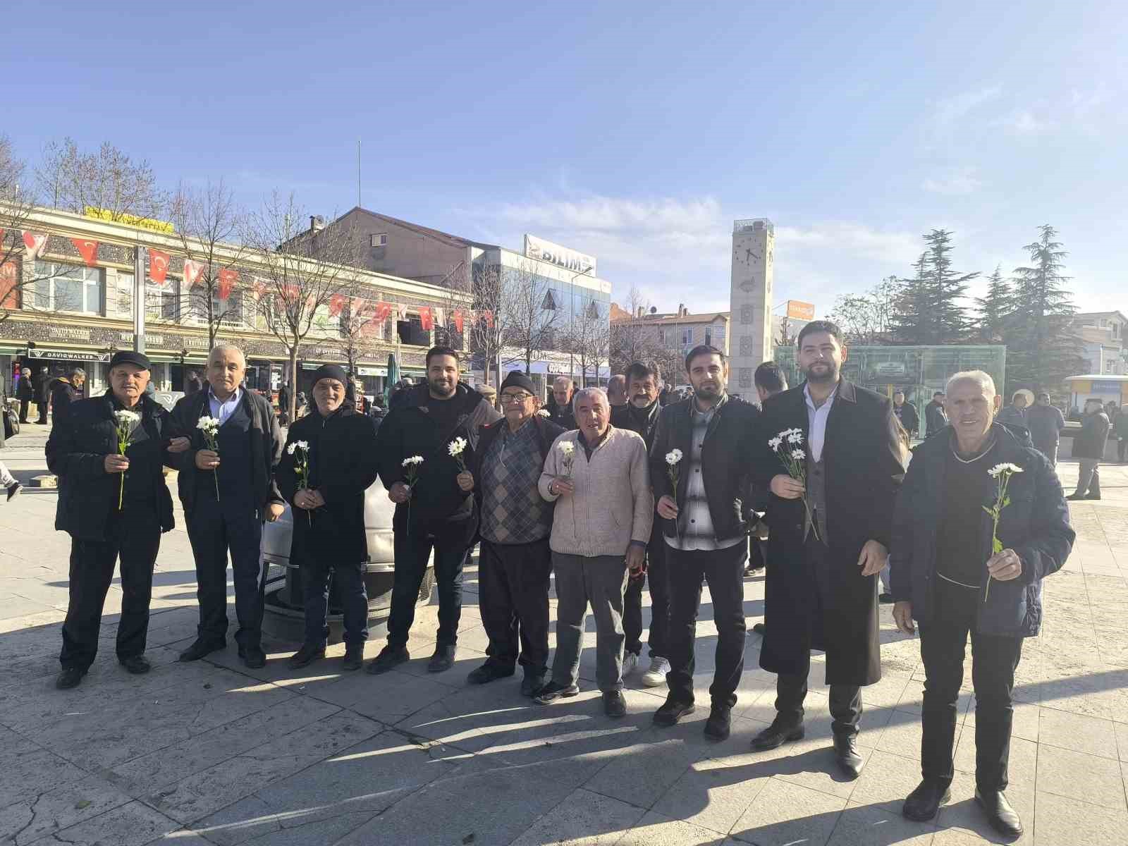Kırşehir’de ’Dünya Tersine Günü’ etkinliğinde bir grup genç erkeklere çiçek dağıttı.