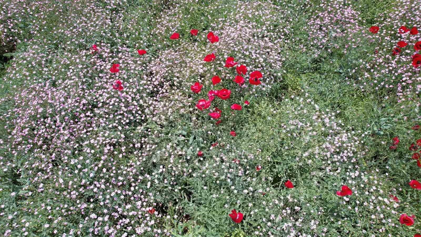 Adıyaman’da ekili alanlar çiçeklerin açmasıyla renklendi. Yeşilin hakim olduğu alanlarda açan rengarenk çiçeklerle renk cümbüşü ortaya çıktı. Yağışların zaman zaman devam ettiği kentte, güneşin de çıkmasıyla birlikte doğanın eşsiz güzelliği tüm renkleriyle kendini gösterdi. Gelincikler kırmızı rengiyle yeşilin hakim olduğu ekili alanları kızıla boyarken, sarı ve pembe çiçekler de rengarenk bir görüntünün ortaya çıkmasına neden oldu.