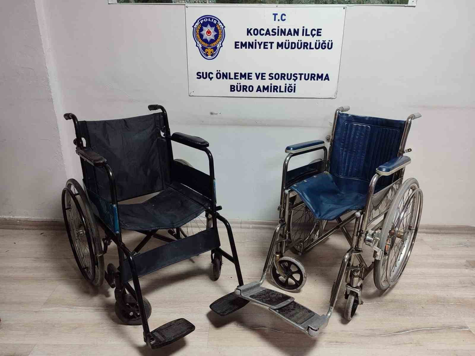 Kayseri’nin Kocasinan ilçesinde 2 adet tekerlekli sandalye çalan şahıslar, polis ekipleri tarafından yakalandı. Çevrede bulunan güvenlik kameraları tarafından kaydedilen olayda, hırsızlardan birinin engelli gibi tekerlekli sandalyeye oturduğu, diğerinin ise sandalyeyi sürdüğü görüldü.