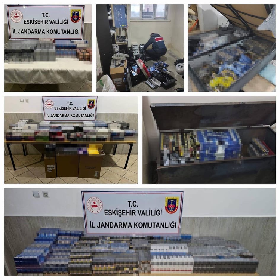 Odunpazarı ve Tepebaşı ilçelerinde şüpheli 6 şahsın kaçak yollardan temin ettiği sigaraları müşteri buldukça sattığı bilgisi jandarma ekiplerince alındı. Eskişehir İl Jandarma Komutanlığı’na bağlı birimlerce konuyla alakalı çalışma yapıldı. Çalışmalar neticesinde şüpheli şahıslara ait 8 farklı adreste yapılan aramalarda; 16 bin 404 paket sigara, 190 adet puro, 2 adet elektronik sigara, 13 şişe alkollü içki, 1 adet ruhsatsız av tüfeği ve 4 takım geyik boynuzu ele geçirildi. Şüpheli şahıslar hakkında soruşturma başlatıldı.