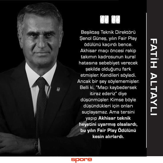 Habertürk Gazetesi yazarlarından Fatih Altaylı, Şenol Güneş'in Akhisar maçı sonrasındaki kural hatası sözlerini yorumladı.