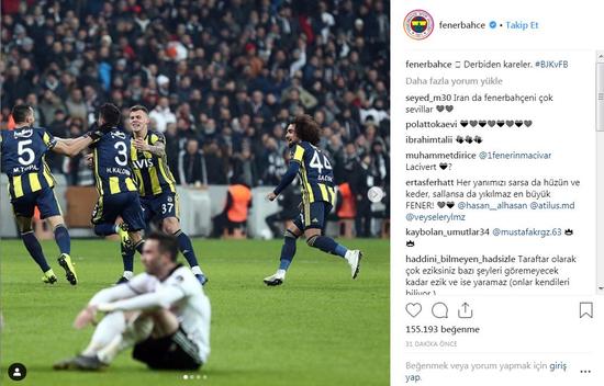 Fenerbahçe'nin Instagram hesabı, maçın ardından ''Derbiden kareler'' yazılı bir paylaşımda bulunurken skoru 3-3 yapan golün sevincinde yerde oturan eski futbolcuları Gökhan Gönül'ün fotoğrafını kullandı.
