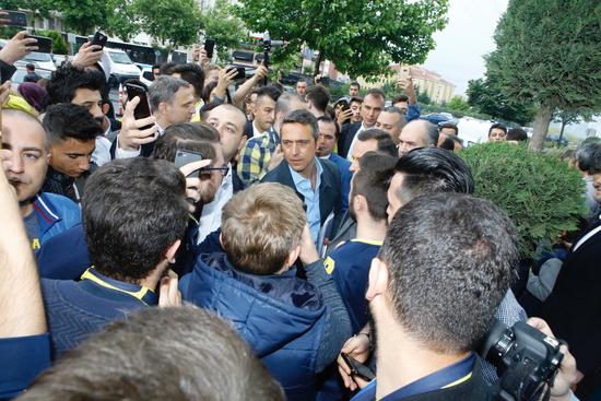 Çorlu ilçesindeki bir otelde düzenlenen etkinlikte Koç, meşalelerle karşılandı. "Ali Koç başkan Fenerbahçe şampiyon" tezahüratları eşliğinde otele giriş yapan Koç, sarı-lacivertli taraftarların hatıra fotoğrafı çektirme taleplerini de geri çevirmedi.