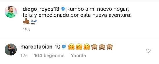29 yaşındaki ofansif orta saha oyuncusu, Fenerbahçe'nin yeni transferi Diego Reyes'e de Instagram üzerinden mesaj yolladı.
