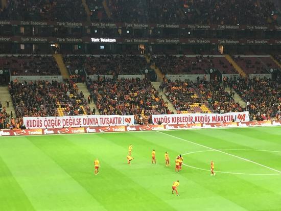 Galatasaray taraftarı Kudüs'te yaşanan olaylara da kayıtsız kalmadı ve "Galatasaray tribünlerinde pankart; "Bir zulme engel olamıyorsunuz, bunu herkese duyurun [HZ Ali], Kudüs özgür değilse, dünya tutsaktır, Kudüs kıbledir, Kudüs miraçtır" pankartları açtı.