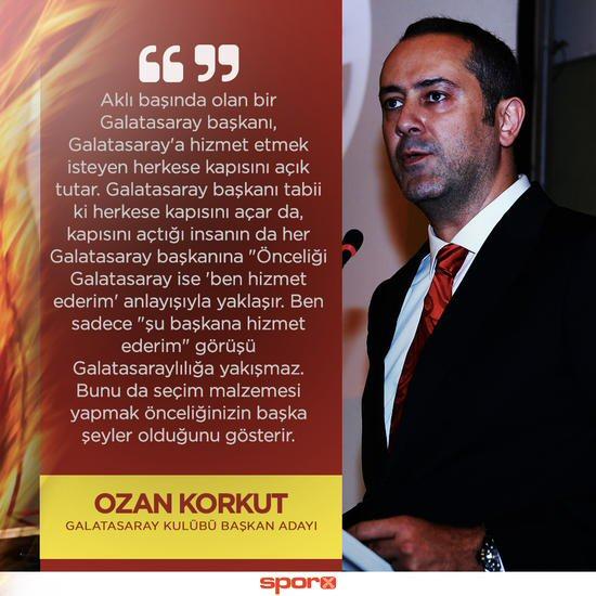 Seçimden önce projelerini açıklayan Ozan Korkut, "Fatih Terim'i Sportif AŞ'de görmek istiyoruz. Galatasaray'ın satılacağı gibi laflar çıkıyor, biz buna müsaade etmeyiz. Biz, taraftarımızı müşteri olarak görmüyoruz. Galatasaray'ın amatör branşlarında küçülmesi gibi bir durum söz konusu değildir. Ben, Euroleague'de Galatasaray'ın şampiyon olmasını isteri. Galatasaray, her alanda ezeli rakibini geçmek zorundadır. Kulübümüzün kasasına şu ana kadar görmüş olduğu en iyi yönetimi sokacağım. Bu paradan daha önemlidir." diyerek sarı-kırmızılı camiaya umut vermişti.