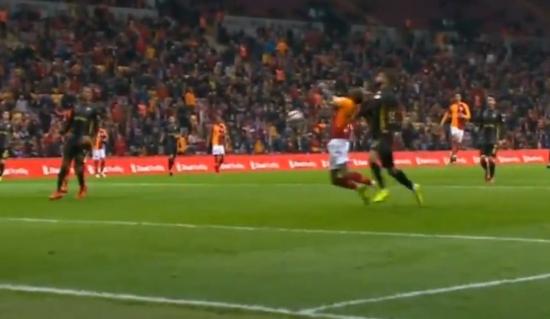 Hızla gelişen Galatasaray hücumunda Feghouli'nin sağ kanattan yaptığı ortaya Onyekuru hareketlendi. Arkasında Issam Chebake bulunan Onyekuru, bir anda kendisini yerde buldu ve penaltı bekledi.