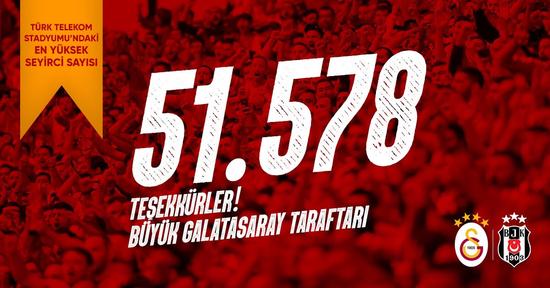 Galatasaray, seyirci rekorunu sosyal medya hesabından açıklarken ''Teşekkürler büyük Galatasaray taraftarı!'' dedi.