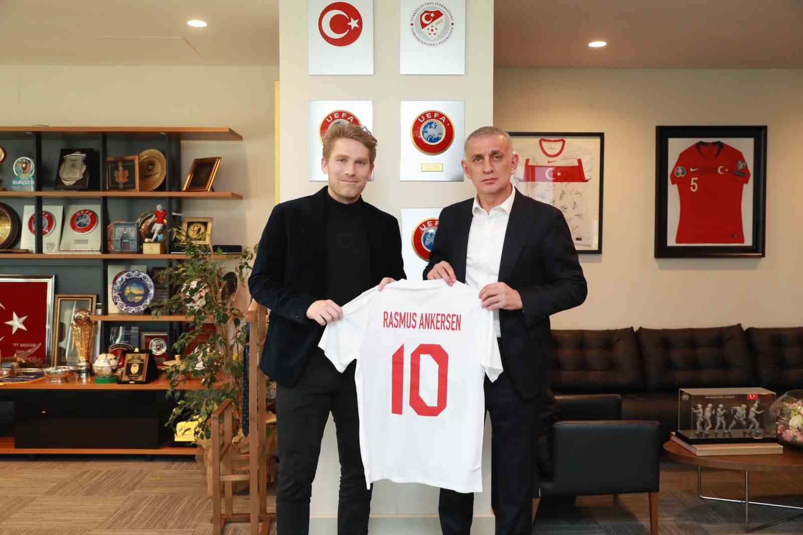 TFF Başkanı İbrahim Ethem Hacıosmanoğlu, ziyaretin sonunda Göztepe Kulübü Onursal Başkanı Mehmet Sepil’e ve Kulüp Başkanı Rasmus Ankersen’e A Milli Takım forması takdim etti.