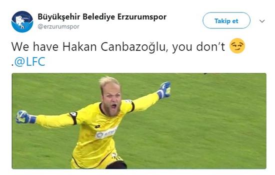 İzmir ekibi, paylaşımında Beto'nun videosuna da yer verdi. Süper Lig'e yeni çıkan Büyükşehir Belediye Erzurumspor'da Göztepe'ye benzer bir paylaşım yaparken ''Biz Hakan Canbazoğlu'na sahibiz, siz değilsiniz'' sözleriyle tweet attı.