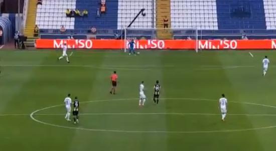Savunmada paslaşan Fenerbahçe'de Roman Neustadter, Harun Tekin'e geri pas gönderdi. Topu kontrol etmek isteyen Harun, büyük bir talihsizlik yaşayarak topu ayağından kaçırdı ve kaleye giden meşin yuvarlak ağlarla buluştu.