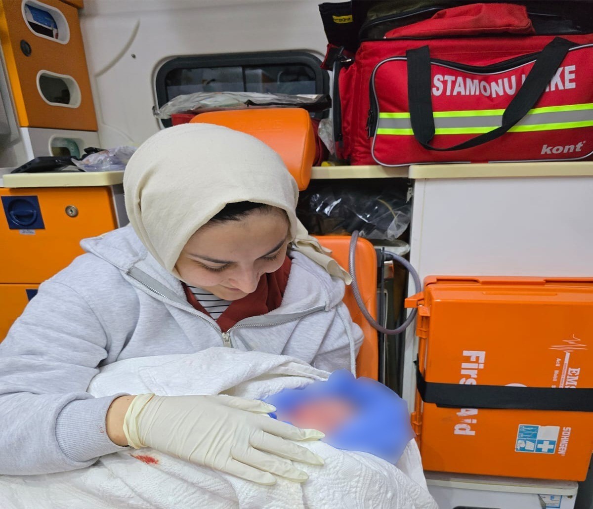 Yola çıkıldığında, ambulansta sancıları şiddetlenen kadın, ambulansta Ebe Rümeysa Ateşoğlu ve Ebe Ayşenur Hanifeoğlu tarafından doğum yaptırıldı. Genel durumları iyi olan anne ve bebeği, sağlıklı bir şekilde Kastamonu Eğitim ve Araştırma Hastanesine nakli sağlandı.