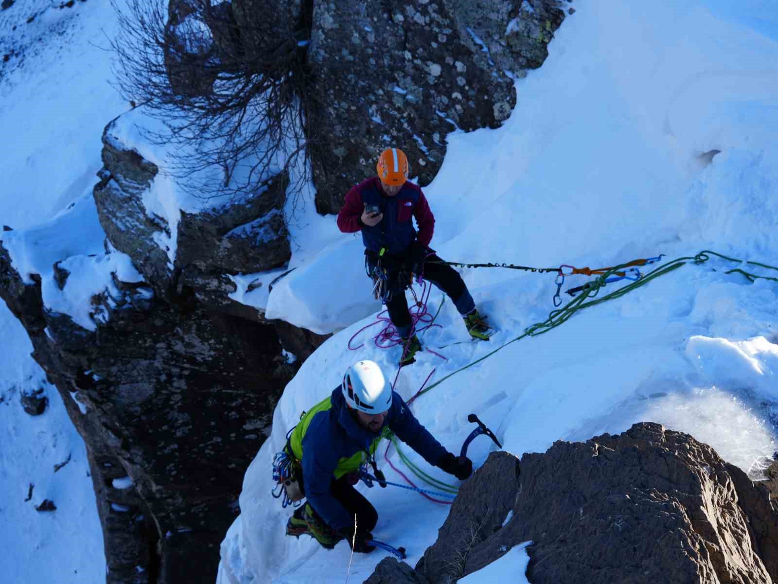 Iğdır’da dağcılar donmuş şelaleye tırmandı