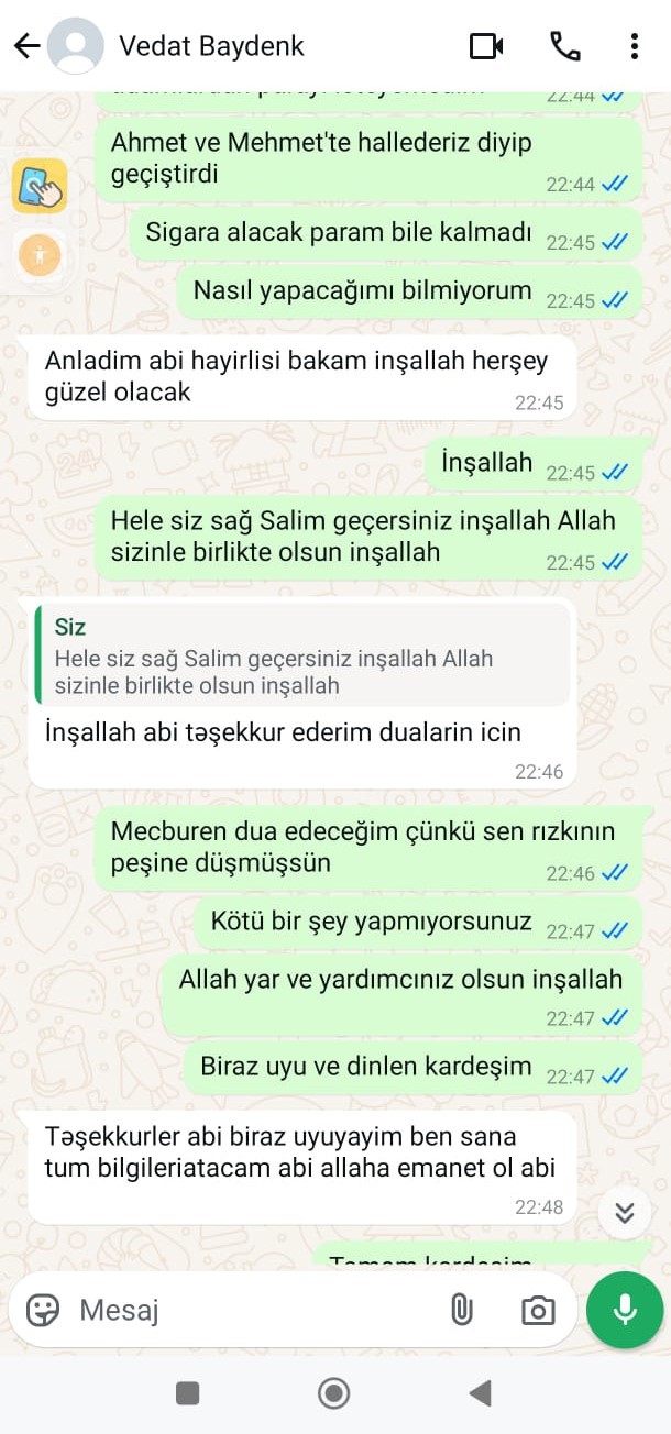 Kaybolan Hüseyin Kaya’nın yeğeni Rıza Kaya, “17 gündür haber alamıyoruz. Lübnan’dan İsrail’e gitmek için yol izliyor. Kendi çabalarıyla sınırı geçmeye çalışıyorlar İsrail tarafına, 17 gündür haber alamıyoruz. Cumartesi günü yola çıkıyorlar. Yola çıktıktan sonra konum bilgileri Akşam 21.30 gibi kesiliyor. 4’üncü kişi gitmek isterken kaza geçirdiği için gidemiyor. O kişiyle konuşuyorlar. Çınar Alp var orada, konumu 8 saat sabit bir yerde kalıyor. Bunlara bomba mı atıldı, takip edilip yakalandı mı bu konuda kesin bir bilgimiz yok. 17 gündür kayıp. Bir firmadan iş almışlardı. Orada çalıştılar. Yüklü alacakları vardı. Bunlar da şikayet ediliyor. Onlar deport edilip Türkiye’ye gönderiliyor. 7 ay önce oldu. Bunlar alacaklarını alamadığı için böyle tehlikeli bir yola girdiler. Dışişleri Bakanlığına gittik. Derdimizi anlattık. Konsolosluklarla iletişim halindeyiz. Haber alamıyoruz. Şu an Lübnan sınırından kayıp. Daha kaçak olarak İsrail’e geçme durumu yoktu. Sadece sınırda yürüdükleri için o anda dron görüntü alıyor akşam 18.00’de. 21.30’da irtibat kesiliyor. Acaba bunlar takip edildi de İsrail güvenlik güçleri tarafından alındı mı? Böyle bir şeyle kendimizi avutuyoruz” dedi.