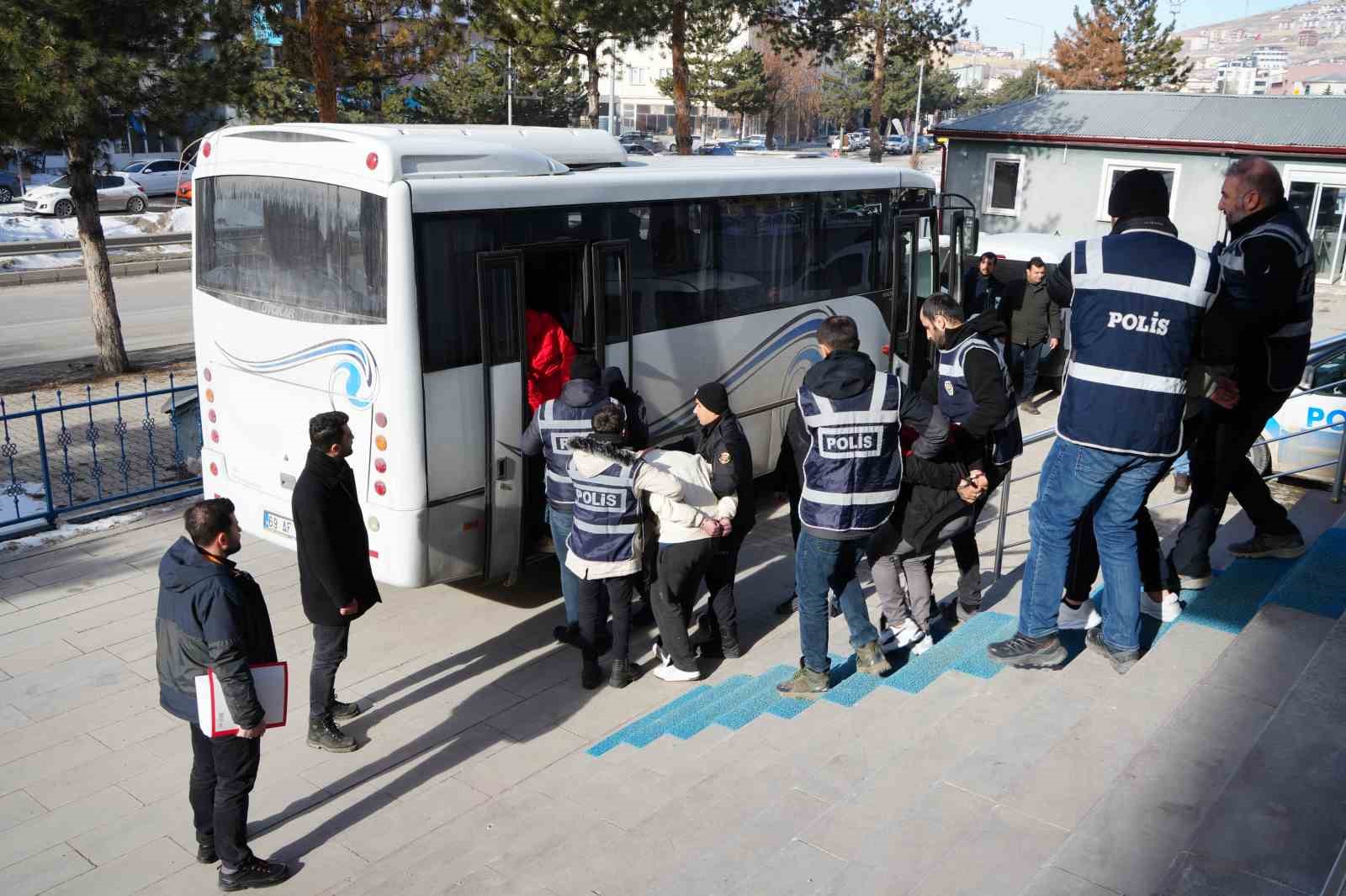 Mersin’de sözde faaliyet gösteren bir oto kiralama dükkanından araç kiralamak isteyen Bayburtlu bir vatandaş, dolandırıldığını anlayınca Bayburt İl Emniyet Müdürlüğüne başvurarak, şikayette bulundu. Mağdur vatandaşın şikayeti üzerine çalışma başlatan Bayburt polisi, dolandırıcıların peşine düştü. 40 gün boyunca dolandırıcıların izini süren polis, aile üyelerinden oluşan dolandırıcı çetesine Mersin’de operasyon düzenledi. Şüpheli şahısların oto kiralama dükkanını andıran iş yerine baskın yapan polis ekipleri, 11 kişiyi dükkanda kıskıvrak yakaladı. Mersin’den Bayburt’a getirilen şüpheliler, emniyetteki işlemlerinin tamamlanmasının ardından adliyeye sevk edildi.