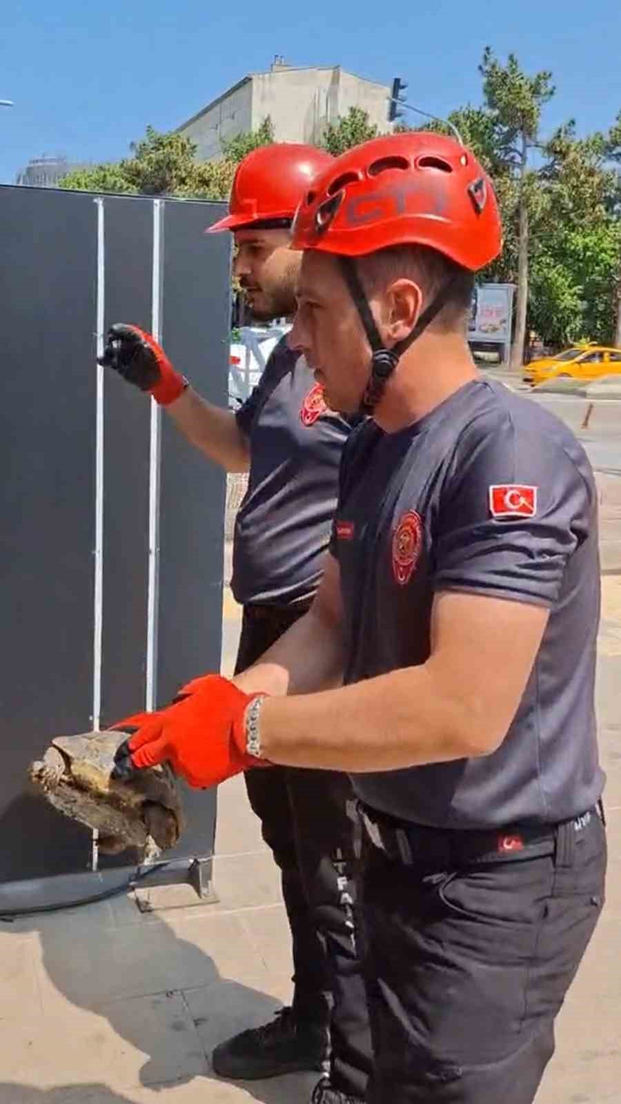 İtfaiye personeli, dikkatli müdahaleyle kaplumbağayı sıkıştığı yerden zarar vermeden çıkardı. Kurtarılan kaplumbağa, doğal yaşam alanına bırakılmak üzere koruma altına alındı. O anlar cep telefonu kamerasıyla görüntülendi.