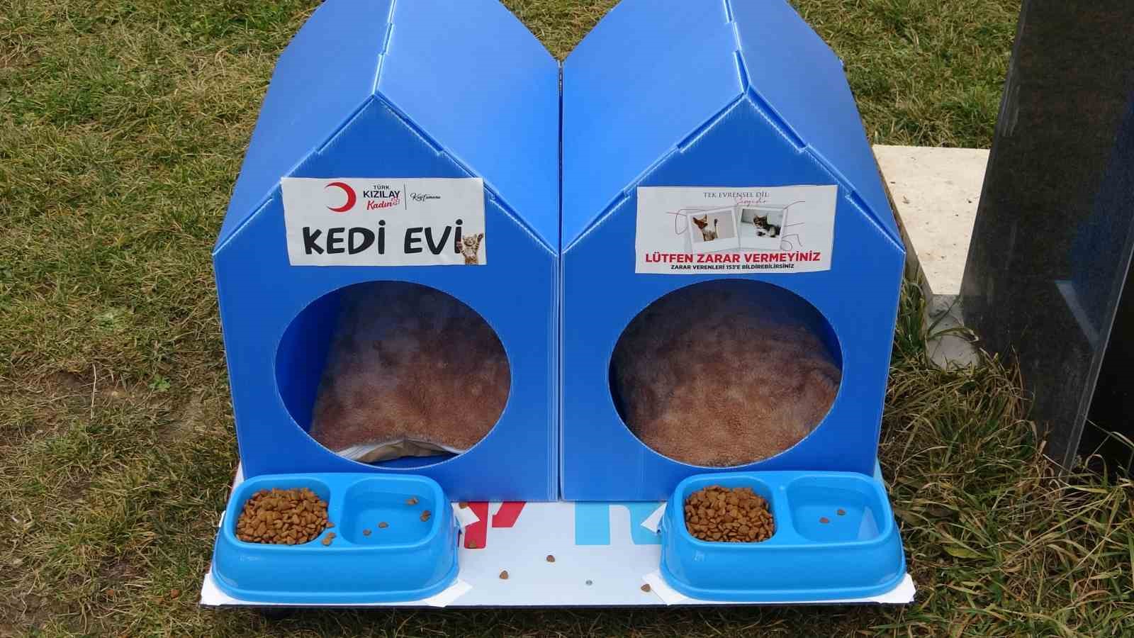 Türk Kızılay Kastamonu Şubesi’nin kadın gönüllüleri tarafından başlatılan proje çerçevesinde, sokakta kalan kediler için parklara yuvalar yerleştirildi.