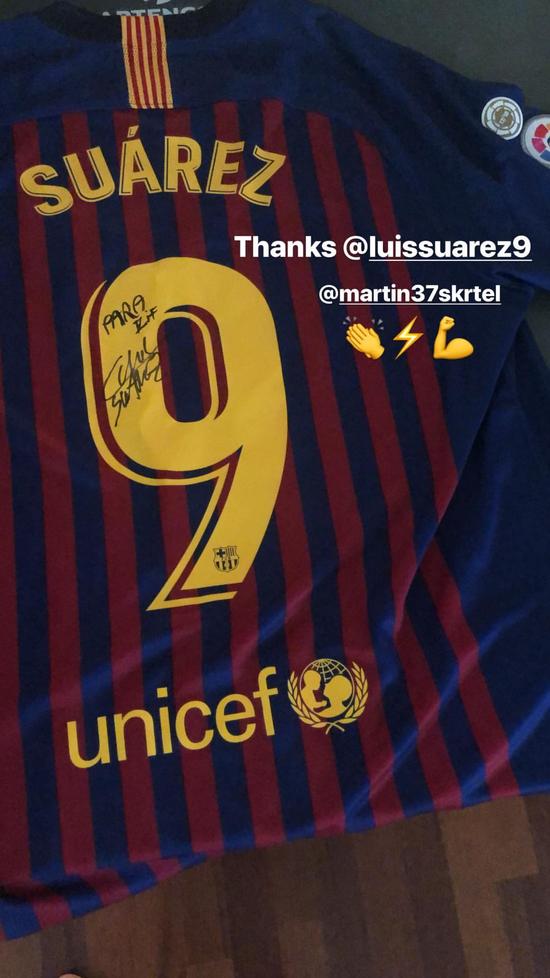 Luis Suarez'in gönderdiği formayı Instagram hesabından paylaşan Eljif Elmas, yıldız oyuncuya teşekkür etti ve Martin Skrtel'ı da etiketledi.