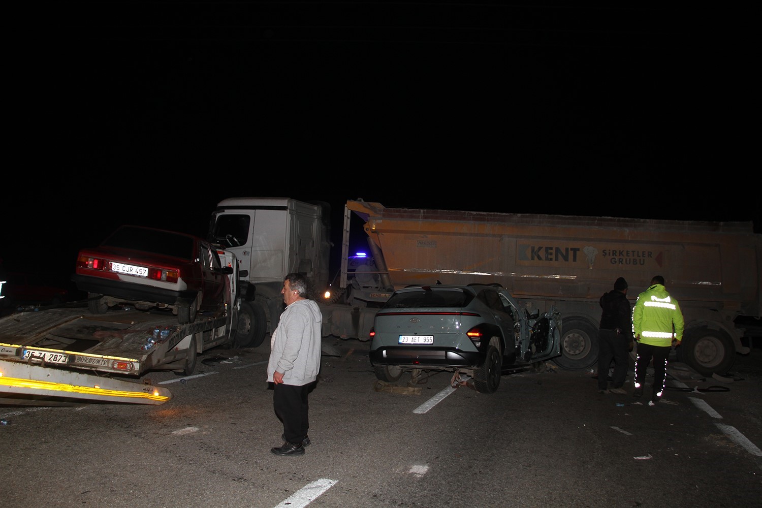 Kaza, 1 Şubat Cumartesi günü saat 23.45 sıralarında İzmir-Ankara D300 karayolu Gökçeören kavşağı yakınlarında meydana geldi. İzmir’den Uşak istikametine seyir halinde olan Cevdet Gökdemir (62) idaresindeki 35 ZA 2873 plakalı kurtarıcı ile aynı yönde seyir halinde olan Veli Süel (64) idaresindeki 23 AET 955 plakalı otomobil, Gökçeören tali yolundan D300 karayoluna bağlanmak isteyen B.V. (50) idaresindeki 45 ABU 246 plakalı kum yüklü hafriyat kamyonuna çarptı. Çarpışmanın şiddetiyle 23 AET 955 plakalı otomobil kamyona ok gibi saplanırken, sürücü Veli Süel (64) ve ön koltukta yolcu olarak bulunan Fatma Süel (61) araç içerisinde sıkıştı. Aynı araçta bulunan Meral Şahin (38) ve Umay Şahin (4) ile kurtarıcı sürücüsü Cevdet Gökdemir (62) ise kazayı hafif yaralı olarak atlattı. Kazayı görenlerin ihbarı üzerine olay yerine ambulans, itfaiye, jandarma ve trafik polisleri sevk edildi. Kısa sürede olay yerine ulaşan Manisa Büyükşehir Belediyesi’ne bağlı Kula İtfaiye Amirliği ekipleri, otomobil içerisinde sıkışan yaralıları kurtarıp sağlık ekiplerine teslim etti. İlk müdahaleleri olay yerinde yapılan yaralılardan Fatma Süel (61), Meral Şahin (38), Umay Şahin (4) ve kurtarıcı sürücüsü Cevdet Gökdemir (62) Salihli Devlet Hastanesi’ne sevk edilirken, ağır yaralı olarak sıkıştığı yerden kurtarılan otomobil sürücüsü Veli Süel (64) Kula Devlet Hastanesi’ne sevk edilmiş ,ancak burada doktorların tüm çabasına rağmen yaşam mücadelesini kaybetmişti.