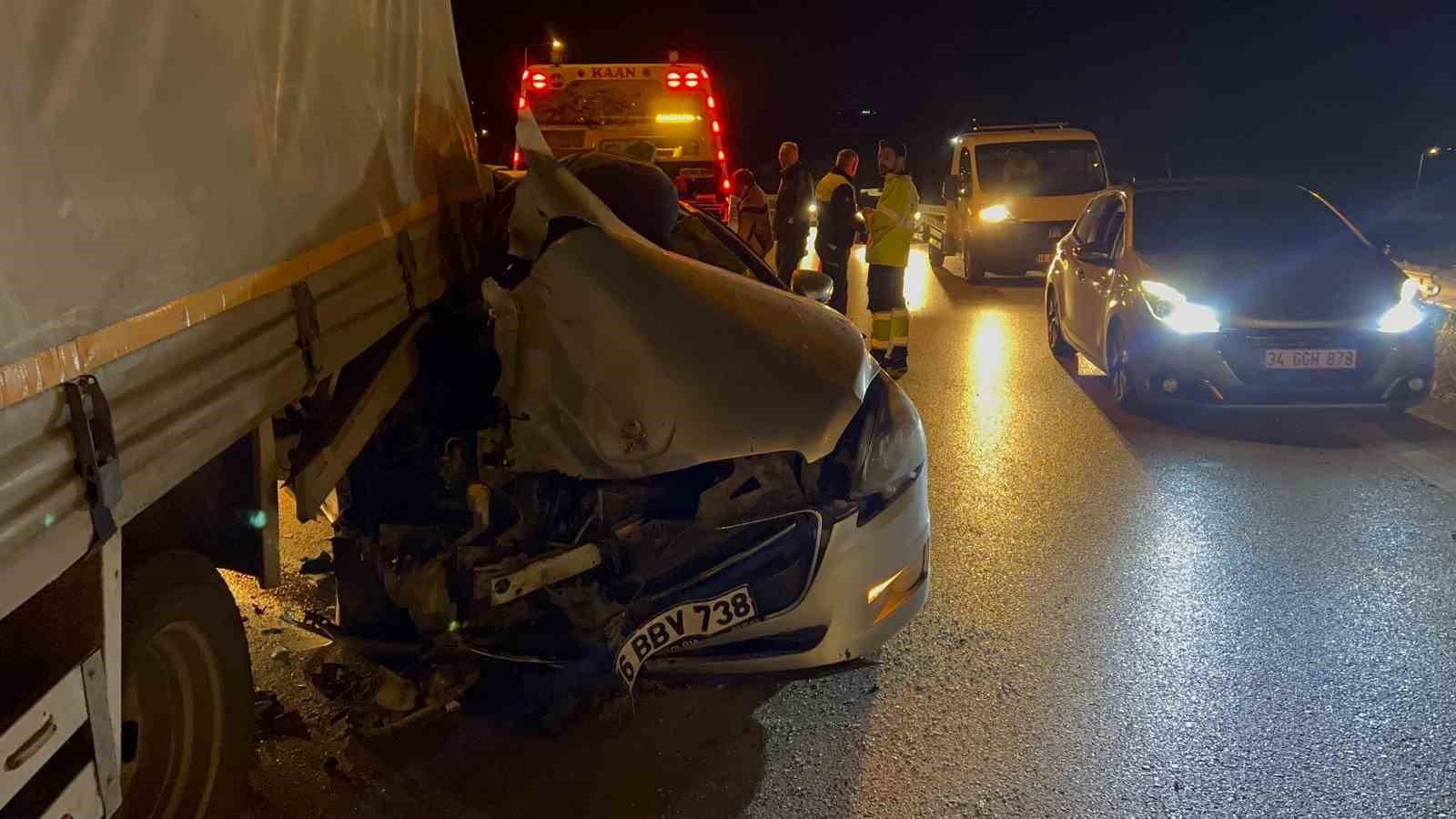Bursa’da otobanda seyir halinde olan otomobil, önünde seyreden kamyona çarptı. Yaşanan kazada 2 kişi yaralandı.
