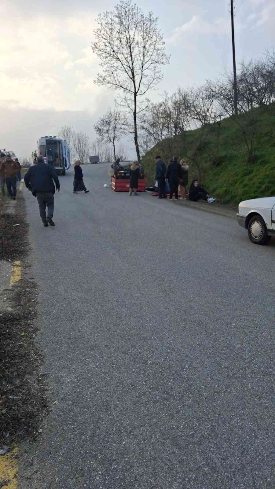 Düzce’de tarım aracı olarak kullanılan patpat takla attı. Kazada 3 kişi yaralandı.