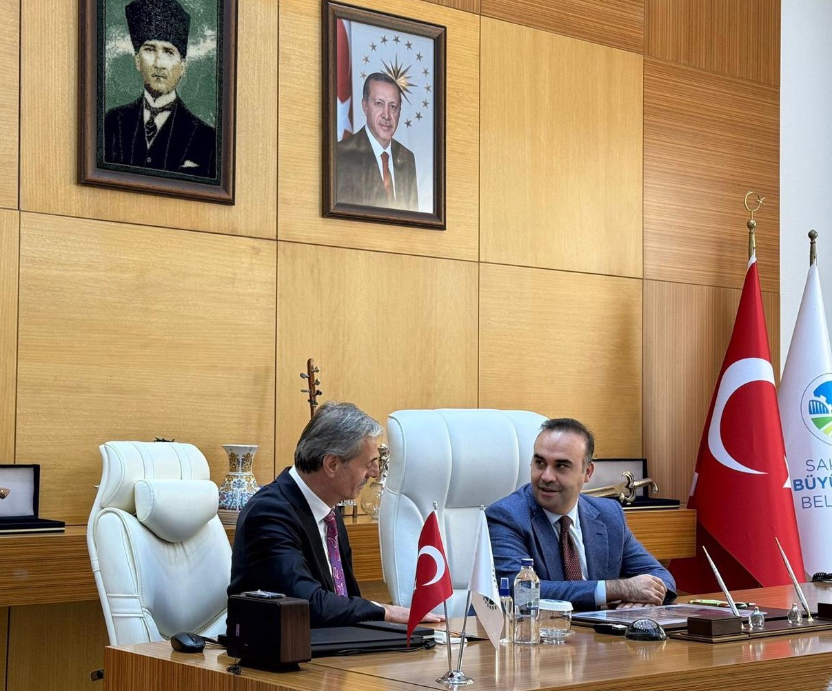 Bir dizi programlara katılmak üzere Sakarya’ya gelen Sanayi ve Teknoloji Bakanı Mehmet Fatih Kacır, Büyükşehir Belediyesi’ni ziyaret etti. Büyükşehir Belediye Başkanı Yusuf Alemdar, Sanayi ve Teknoloji Bakanı Mehmet Fatih Kacır’la Sakarya’yı konuştu. Ziyarette Vali Rahmi Doğan, AK Parti Genel Başkan Yardımcısı Ali İhsan Yavuz, AK Parti Milletvekilleri Lütfi Bayraktar, Murat Kaya, Ertuğrul Kocacık, AK Parti İl Başkanı Yunus Tever, ilçe belediye başkanları, ilçe başkanları ve Büyükşehir bürokratları da yer aldı.