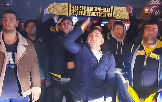 Teknik direktör Ersun Yanal, otobüsten sarı lacivertli taraftarları selamladı.