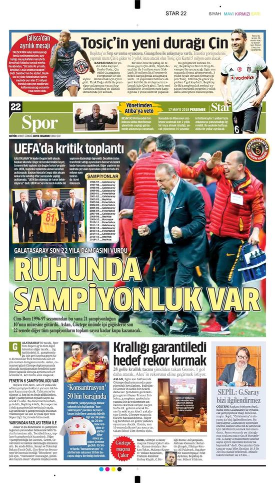 Böylece Cim-Bom, son 22 yılda elde edilen şampiyonlukların yarısını tek başına kazanmış olacak. Aslan 11 kez ipi göğüslerken, diğer 3 şampiyonun toplam sayısı da ancak 11 oldu. Bu dönemde Fenerbahçe 6 defa, Beşiktaş 4 defa, Bursaspor ise 1 defa şampiyonluk sevincinin yaşadı. Lig tarihinde 6 şampiyonluğu bulunan Trabzonspor ise son 22 yılda Spor Toto Süper Ligi zirvede hiç bitiremedi.
