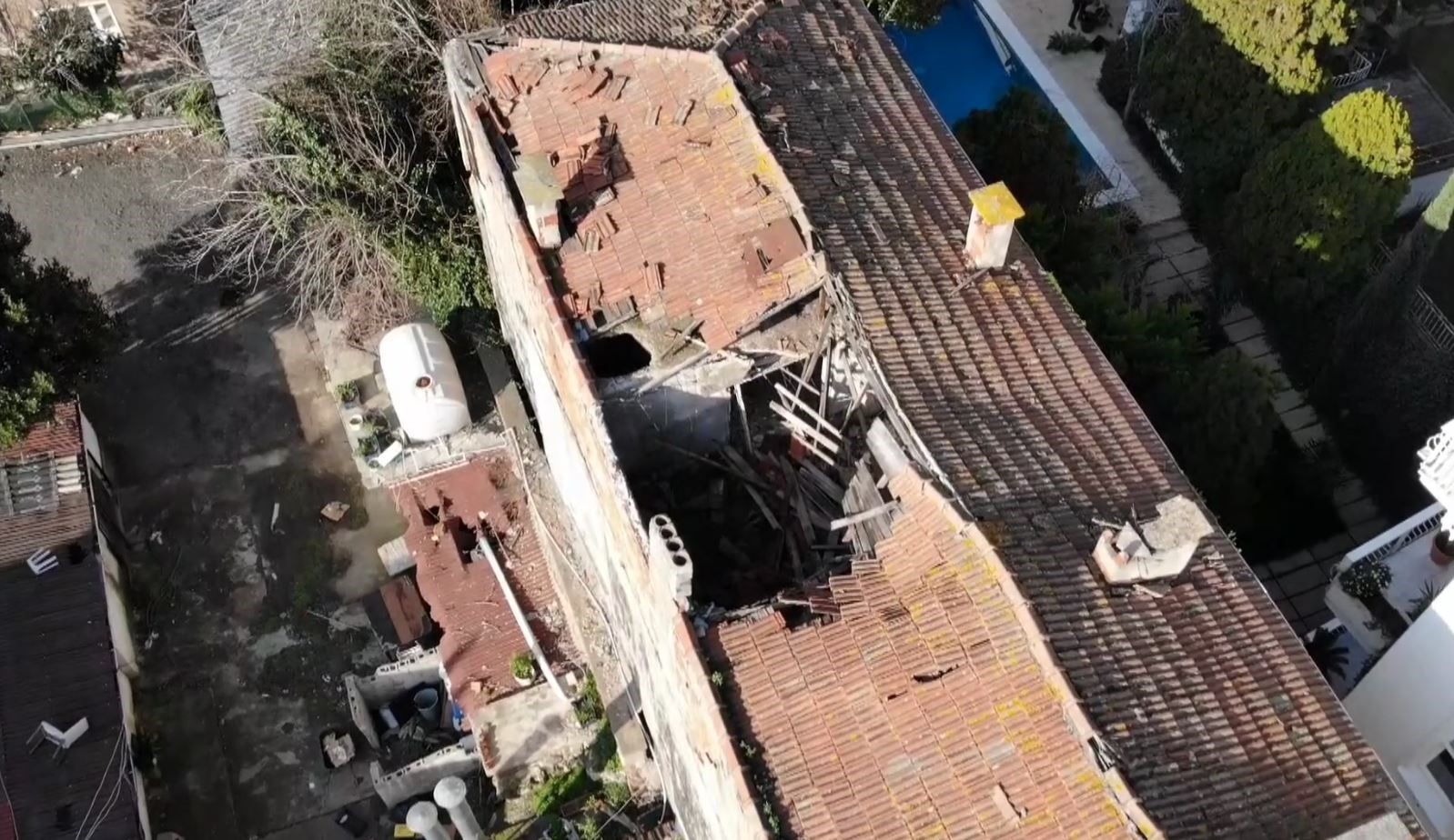 Binanın çatısında çökme yaşandığı havadan görüntülenirken binanın hemen yanında yaşayan Erol Aksoy, “Gördüğünüz gibi kolon boşta. Kolon düştüğü zaman bina boşta kalacak ve çökecek. Kaldı ki yukarıda çatı çökmüş vaziyette. Bir kaç defa bu bina için müracaat ettim. Halen kontrollü bir şekilde yıkılmadı nedenini bilmiyorum. Yukarıdan zaman zaman parçalar düşüyor. Çoluk çocuğun başına düşebilir. Buradan köpeğini gezdiren insanlarda geçiyor, merak edip fotoğraf çekmeye gelenler de oluyor. Dolayısıyla bu bina bir tehlike arz ediyor” diye konuştu.