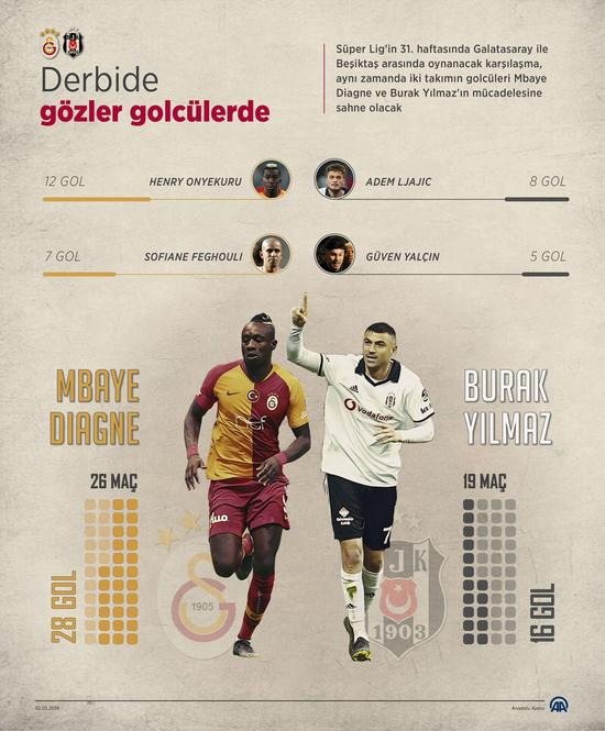 Beşiktaş'ın derbideki en büyük gücü olacak Burak Yılmaz, eski takımı Galatasaray karşısında gol serisini sürdürmeye çalışacak. Diagne gibi bu sezon iki farklı takımda görev alan Burak, ligin ilk yarısında Trabzonspor formasıyla 7 karşılaşmada rakip fileleri 5 kez havalandırdı. 33 yaşındaki oyuncu, ikinci devrede formasını giydiği Beşiktaş'ta ise 12 karşılaşmada 11 gol kaydetti. Burak Yılmaz, özellikle son 6 karşılaşmada gol sevinci yaşamayı başardı. Deneyimli futbolcu, söz konusu 6 karşılaşmada 7 gol attı. Trabzonspor'da attığı 5 golün ikisini penaltıdan atan Burak, Beşiktaş'ta da 2 golü bu şekilde buldu.